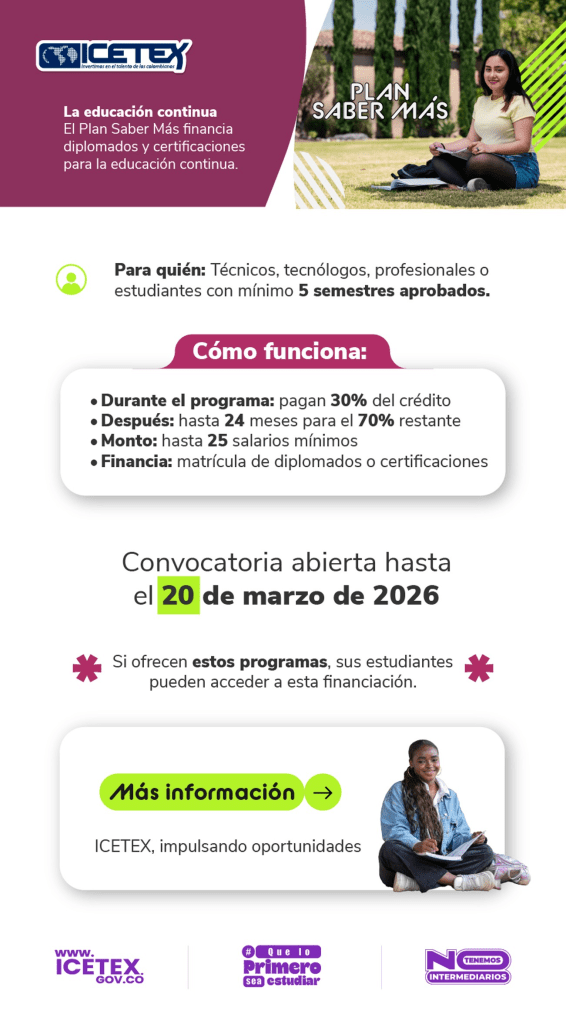 Plan Saber Más ICETEX: financiación para diplomados y certificaciones